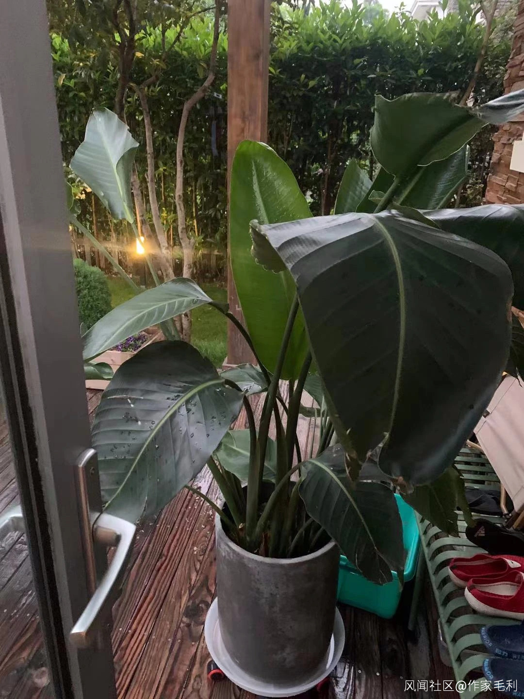 有一天我指揮我爸把天堂鳥搬到庭院裏吹吹風,一天後,它神奇般地舒展開了葉子,一改原來那副焉了吧唧的模樣。