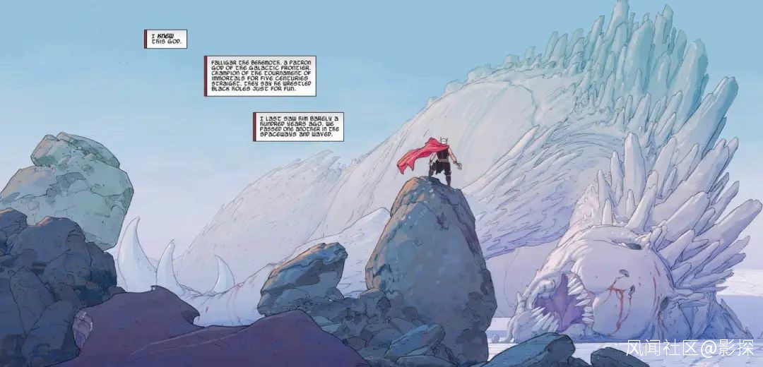 這個鏡頭,像素級臨摹致敬了漫畫**《雷神 V5》**(Thor:God of Thunder)第三期。