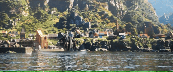 暫停,放大,能看到托爾、女武神和石頭人站在船上。