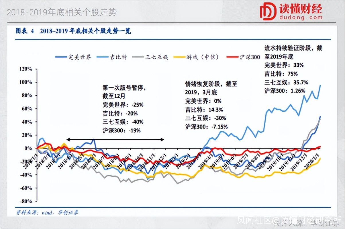 從圖中來看,2018年底遊戲版號重發以後,主流遊戲公司的股價走勢並未明顯強於滬深300,但在半年以後,主流遊戲公司的股價開始大幅領先滬深300。那麼這其中到底發生了什麼?