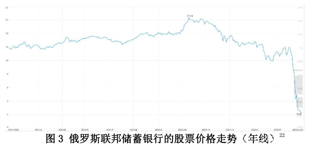 俄烏衝突爆發後,以美國為首的西方國家對俄羅斯展開金融制裁,俄概股在海外遭遇了劇烈波動,多家大企業市值蒸發超過99%。以在英國上市的俄羅斯聯邦儲蓄銀行Sberbank為例,短短半年,其股價從21元直接腰斬到10元。俄烏戰爭爆發後,英國的金融監管部門下發通知,要求投資者賣出俄羅斯的股票;否則,交易所會進行“強制平倉”。結果Sberbank先是跌了77%,到2塊多,然後又繼續腰斬到1元左右,兩天暴跌90%多,退市前已經直接變成了0.48元,如圖3所示。在倫敦上市的其他俄羅斯主要股票,包括盧克石油(Lukoil)、諾瓦泰克(Novatek)和俄羅斯石油公司(Rosneft)也出現了類似的下跌。少數獲得抄底資格的華爾街公司,則成為俄羅斯財富的最大受益者。