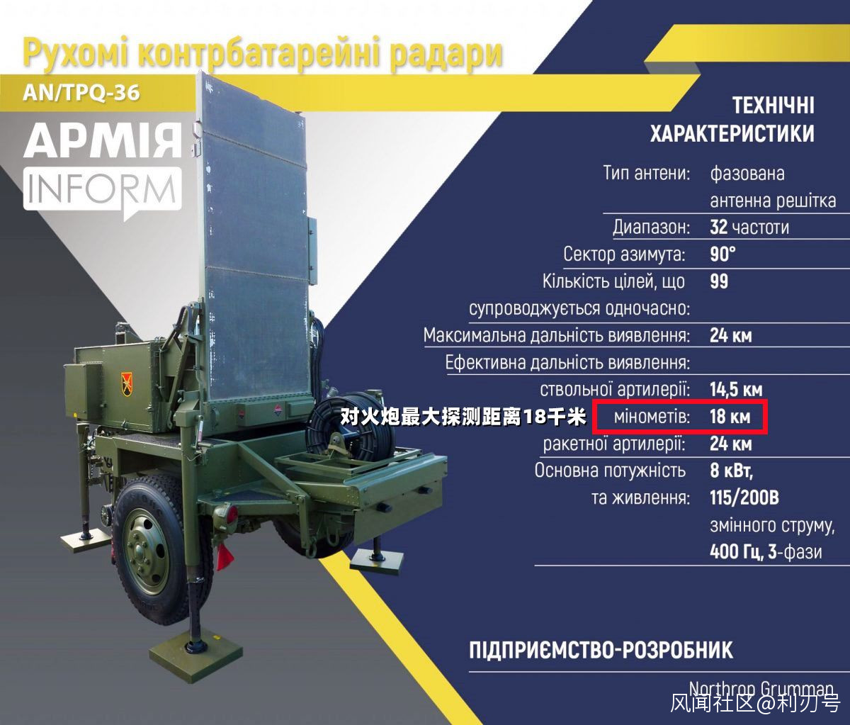 烏克蘭公佈的AN/TPQ-36反炮兵雷達技術指標