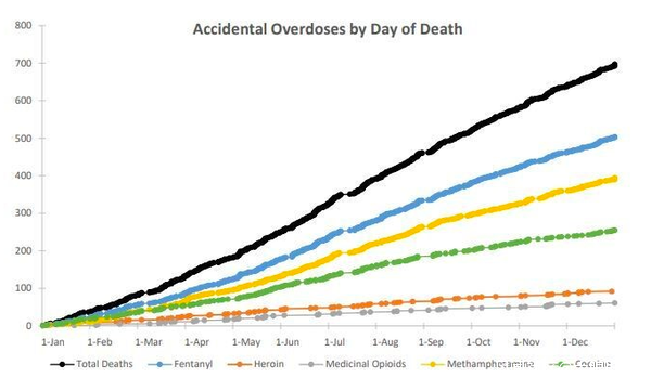 凱利的幕僚長約書亞·胡佛(Joshua Hoover)為這位議員的聲明提供了證據。他指出,**《紐約時報》最近的一篇文章稱,去年舊金山因吸毒過量死亡的人數為713人,是新冠肺炎死亡257人的兩倍多。**雖然這篇文章沒有指出具體的來源,但我們發現舊金山首席法醫辦公室的一份報告支持了凱利的説法。該報告稱,從2020年1月到12月中有697人因意外藥物過量死亡,這些數據是初步估算的。