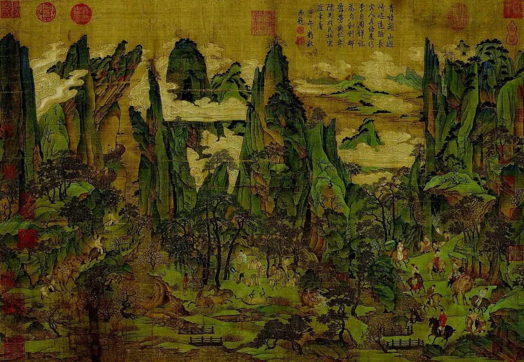 《明皇幸蜀圖》,李昭道繪。此畫描繪了安史之亂時期唐明皇入蜀避難情形