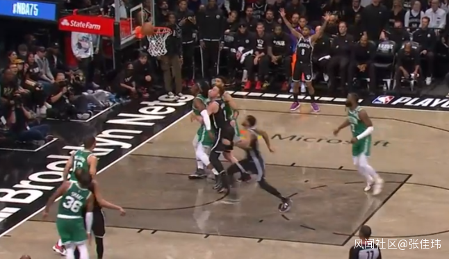 杰倫連續第三次單挑格里芬時,杜蘭特補位,杰倫給塔圖姆空位三分球,自己再單挑米爾斯射中,打停網。