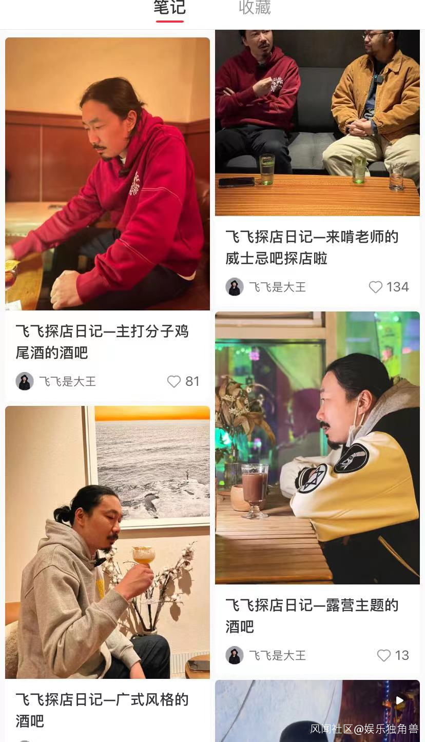 除此之外,在賈斯汀比伯聯名餐廳吃飯體驗、Rapper開的餐廳飲食筆記、給碧梨設計師聽自己唱碧梨的歌等泛娛音樂內容相關分享也收穫了可觀的評論點贊。另有一些知名的“全能型”的音樂人如樑龍、臧鴻飛紛紛在小紅書上擁有了自己的特色內容,如臧鴻飛的飛飛探展日記、飛飛探店日記系列餐廳、酒吧、藝術展等種草內容。
