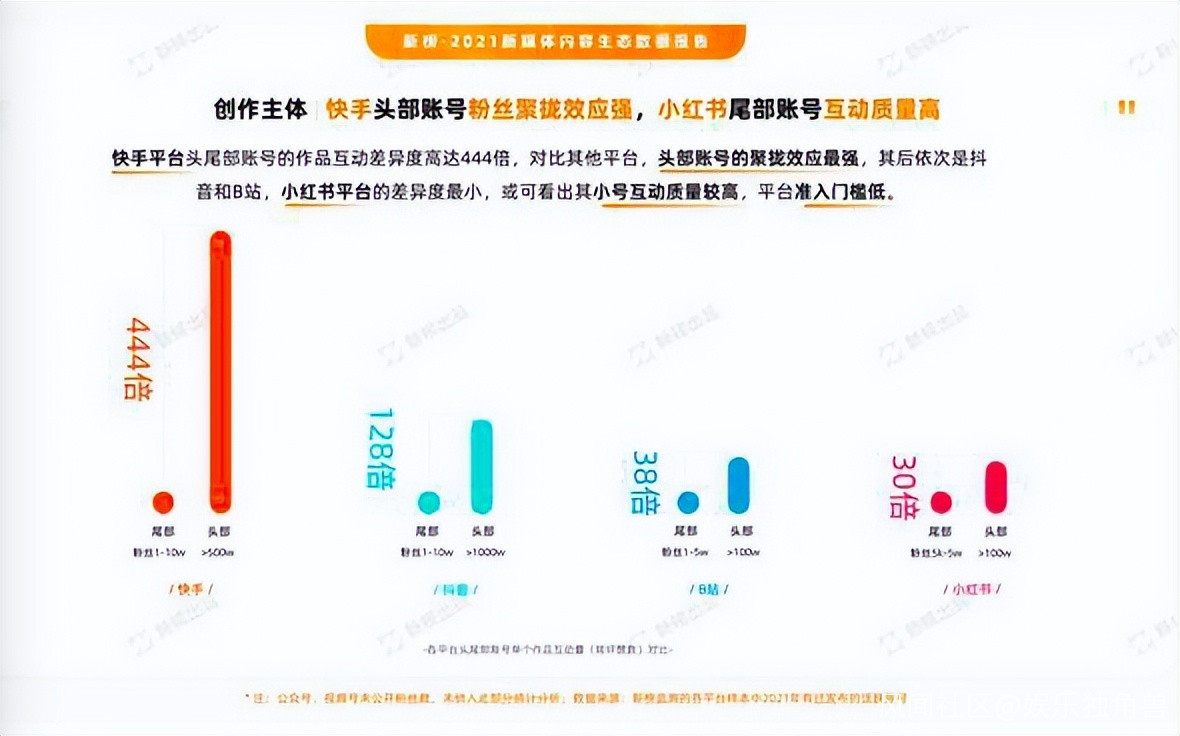 根據《2021年新媒體內容生態數據報告》可以彙總出小紅書的部分特色屬性,包括:各平台頭部賬號普遍最活躍,小紅書則是20w-50w粉絲的中堅層更活躍;快手、B站的遊戲號吸粉力強,抖音、小紅書的時尚博主易出圈;短視頻帶貨成常態,抖音、快手的帶貨視頻佔比上漲、小紅書種草筆記比例走高等等。