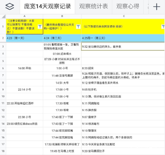 有人忙着刷禮物,甚至有好事者搞了一個“龐寬14天觀察記錄”,記錄他的日程,整理他的歌單,總結自己的觀察心得……