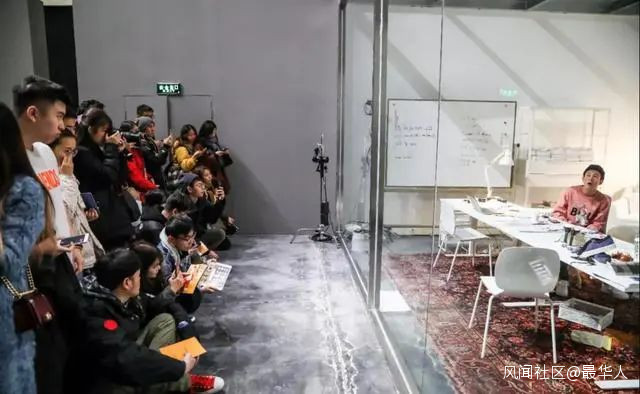一開始,觀眾可以進入畫廊參觀,像觀摩一件展覽品或者一個稀有動物一樣,近距離“窺探”龐寬的行為藝術,有人現場評頭論足,還有人拿出手機不時拍照。