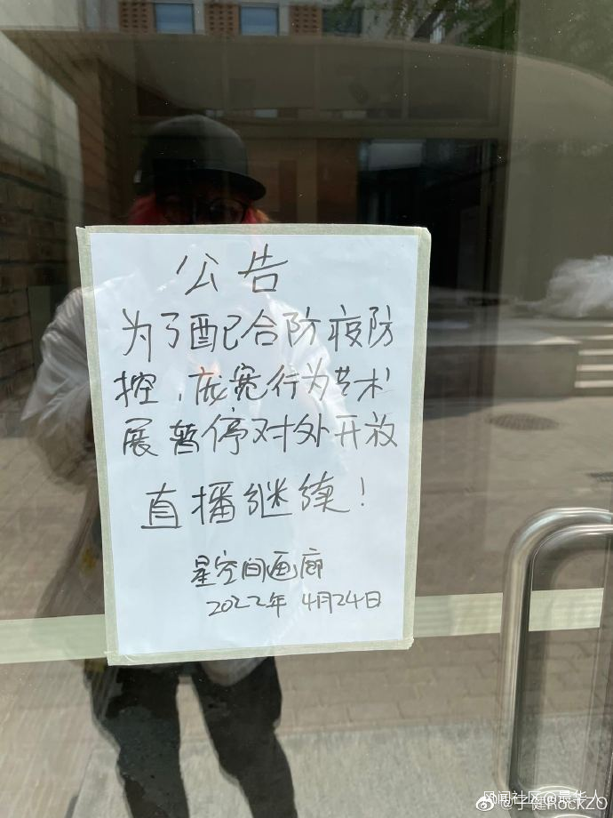 結果第二天,畫廊貼出公告,為了配合防控需求,行為藝術展暫停對外開放。