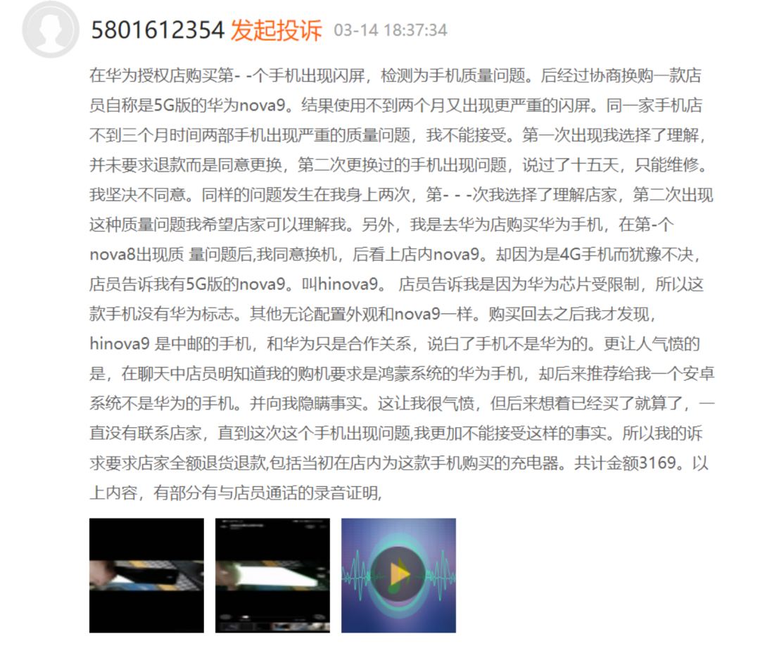黑貓投訴上也有許多關於華為授權店隱瞞事實,向消費者推薦Hi nova而遭到的投訴。