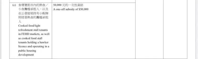 比如小攤、大排檔之類的,如果受防疫影響,也封控了,沒有生意,就給補貼,一次性補貼5萬港元。