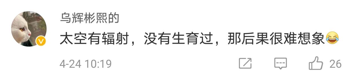 不過也有一些人出來科普説,之所要如此挑選,是因為一旦飛上太空之後,人的身體會因為環境問題發生很多的變化,之所以要已婚,是因為不清楚在太空環境下,你的身體是否會因為環境因素喪失生育能力。