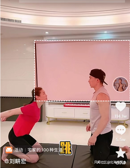 劉畊宏和老婆vivi兩個人的互動視頻中,能看到沙發和大投影儀之間還有一片空地,放下一米寬的墊子後還有約2米寬的距離