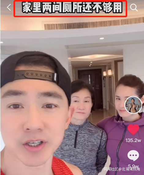 視頻中劉畊宏説:家裏兩間廁所還不夠用