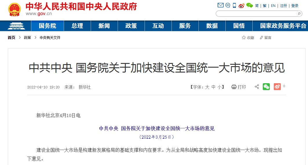 3月25日,中共中央 國務院發表了《關於加快建設全國統一大市場的意見》,督工你怎麼看這份文件?