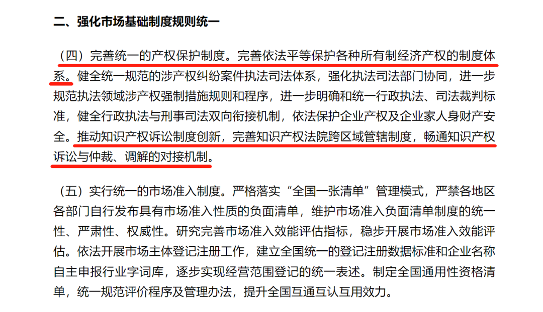 第四個小標題,是完善統一的產權保護制度。完善依法平等保護各種所有制經濟產權的制度體系。健全統一規範的涉產權糾紛案件執法司法體系,強化執法司法部門協同。
