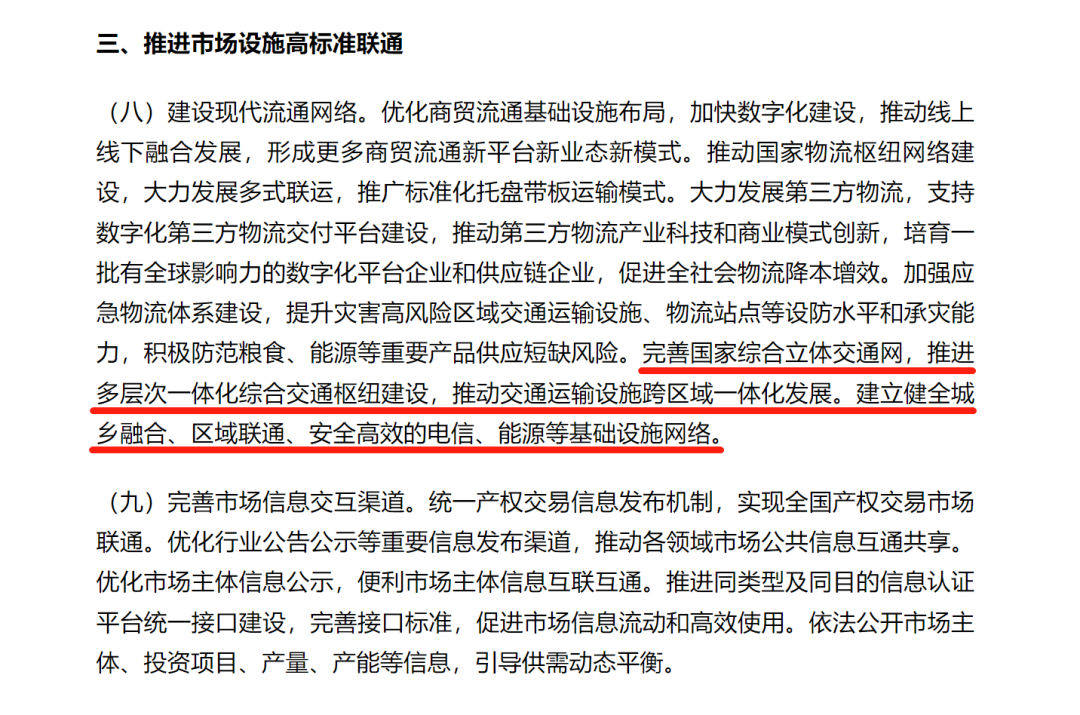 這一條剩下的部分,是完善國家綜合立體交通網。這就是睡前消息之前經常關注的斷頭路和外地車牌問題。這方面最嚴重的問題集中在北京。因為北京一方面卡住了東北和內蒙古南下的通道,另一方面嵌入了河北省內部,阻擋了河北省的內部物流,就看北京什麼時候給外地做個榜樣。