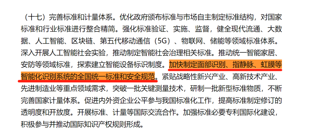 另外,第17個小標題提到了加快制定面部識別、指靜脈、虹膜等智能化識別系統的全國統一標準和安全規範。我之前經常説,現代都市,如果希望要高標準的安全,就沒有絕對的個人隱私。但反過來説,政府也有義務保證,只有通過合法手續,才能讓有關部門使用隱私。這就是安全規範的必要性了。