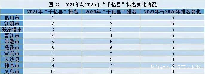2021年“千億縣”十強排名變化 圖片來源:賽迪顧問