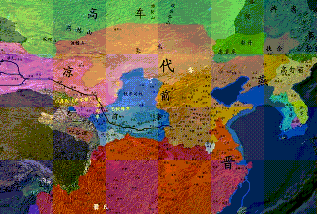 當時,西北還有前涼張氏,北方有代國拓跋鮮卑,南邊有東晉。