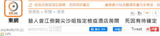 據瞭解,死者為香港藝人曾江,早前由新加坡返回香港,入住在尖沙咀的指定防疫酒店。