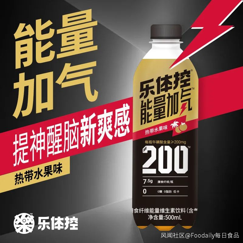 能量加氣牛磺酸維生素飲料為含氣飲料,每瓶500mL牛磺酸含量不少於200mg、膳食纖維含量7.5g,同時0糖0脂肪低卡,以熱帶水果雜果口味打造前中後3種口味基調,口味豐富、暢爽過癮。天貓旗艦店售價15瓶/件/79.9元。