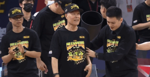 在頒獎儀式之後,香檳把主帥楊鳴淋得全身盡濕,他終於開懷大笑,喊着大家一起最後説出了一句,“遼寧總冠軍!”