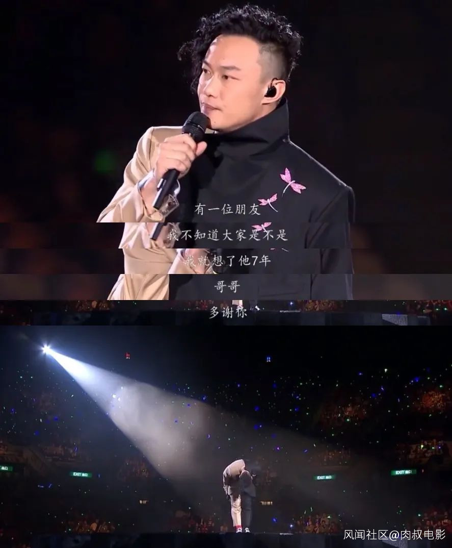 突然出現在《海闊天空》的全場大合唱舞台上——