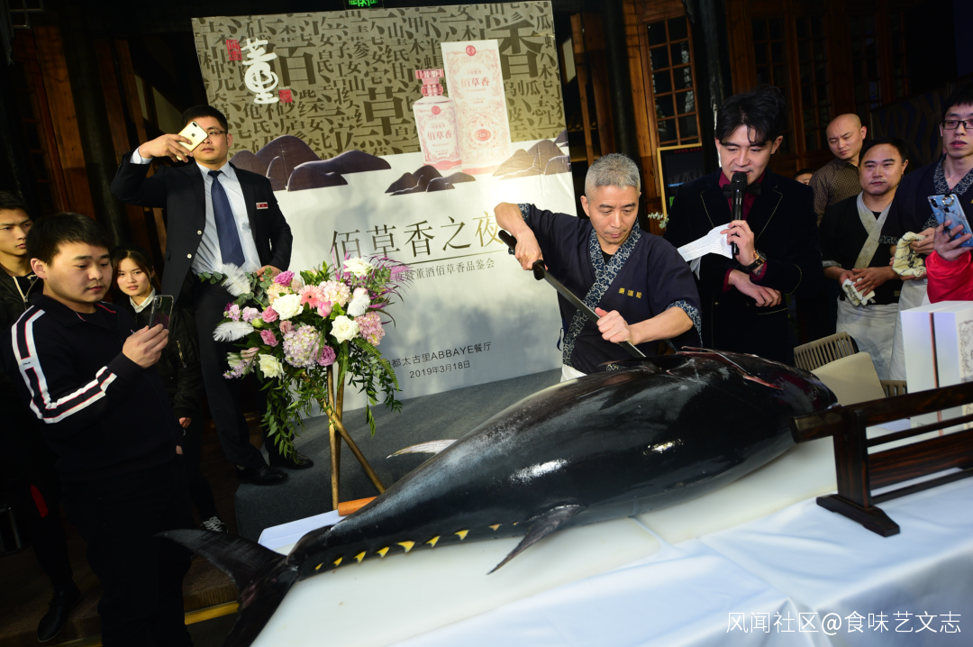 而今國內得以見到完整的一條金槍魚開魚儀式,“佰草香之夜”盛典是其一。