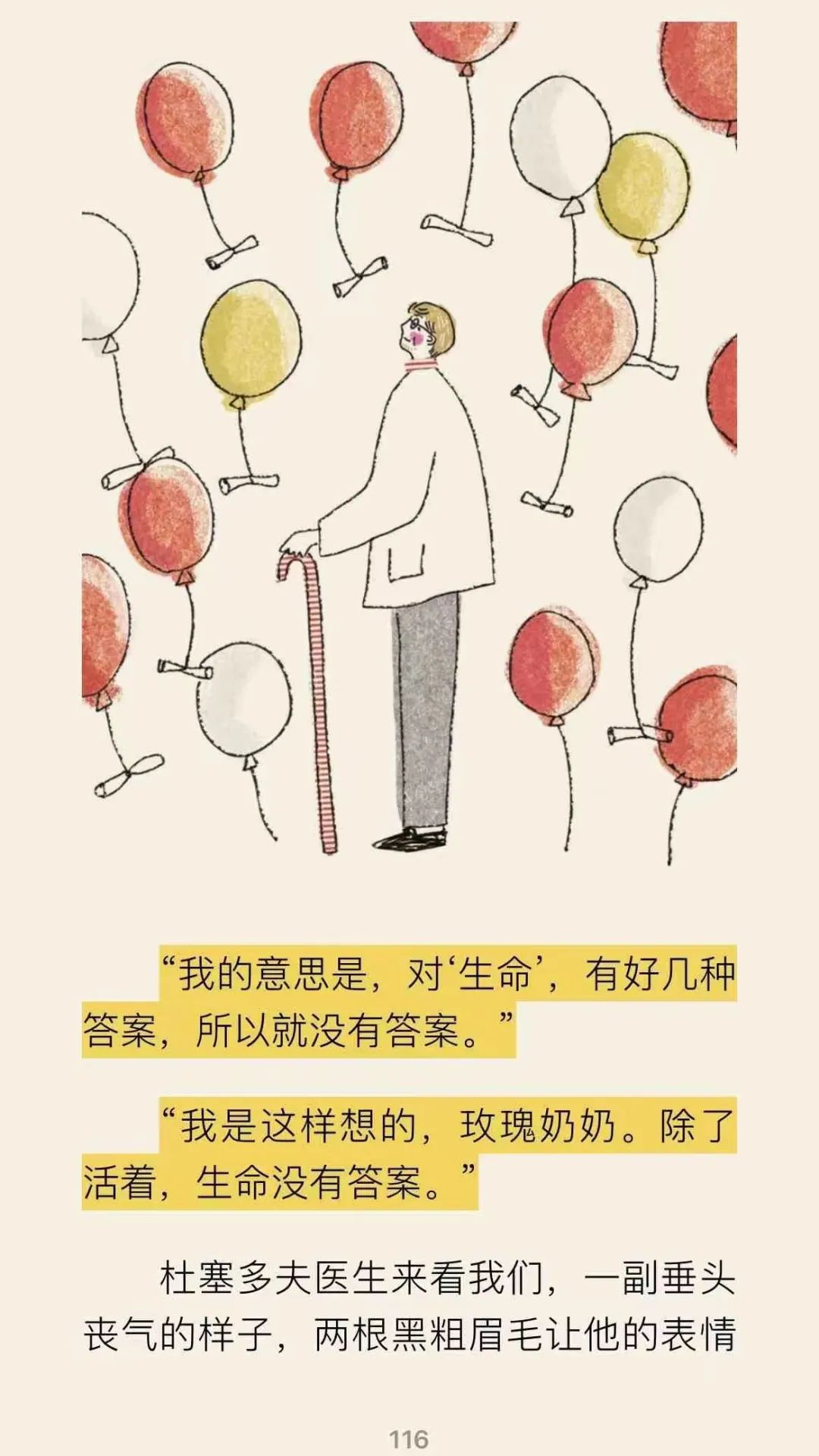 玫瑰奶奶説:“你已經明白你將會死去。但你沒明白不只有你會死,所有人都會死,你父母有一天會,我有一天也會。”