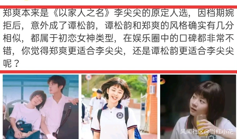 《以家人之名》原本爆料裏的女主角是素人爽,因為檔期衝突,好運掉在了譚松韻身上。