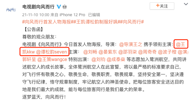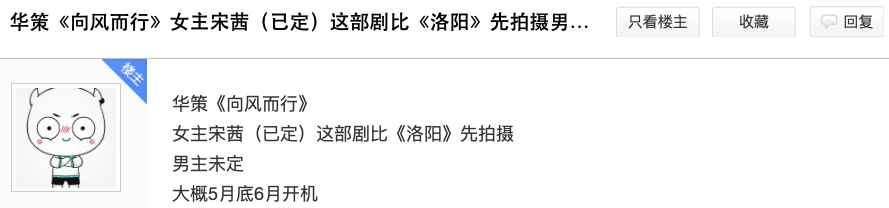 王凱的電視劇《向風而行》早期找的宋茜,結果同樣撞了檔期,宋茜去拍了《風起洛陽》。