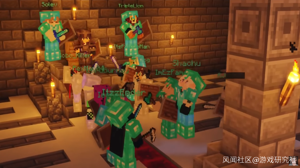 值得一提的是,選擇沙漠的玩家大多是一批此前就參加過各種挑戰的生存大佬,在人們大多還拿着石稿、鐵稿的時候,他們已經挖出了沙漠地形下的大量鑽石資源。這為他們後來的結局鋪墊了一個伏筆。