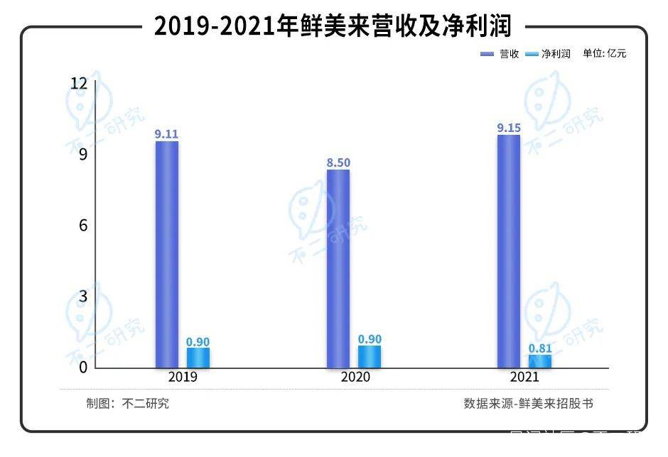招股書顯示,2019-2021年鮮美來營業收入分別為9.11億元、8.50億元、9.15億元;淨利潤分別為8976.64萬元、9025.57萬元、8110.77萬元。其中2021年營收增長7.6%,淨利潤卻下滑近16.5%,增收不增利已現端倪。