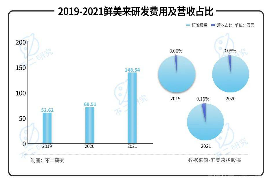 新品的開發勢必要加強研發投入。根據招股書,2019-2021年,鮮美來的總研發支出只有270.67萬元,佔營業收入的比例分別為0.06%、0.08%和0.16%。