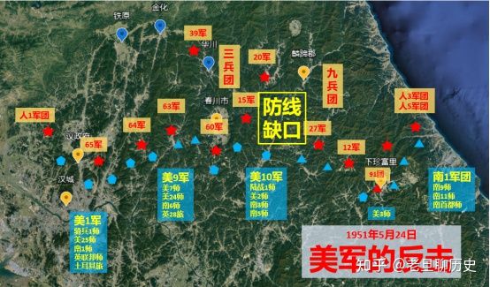 為啥只有這個團這麼危險,因為這個團在進攻時衝得實在是太tm猛了——這個兇猛的老紅軍團直接插到了三七線,是第五次戰役中整個志願軍裏穿插得最遠的部隊。
