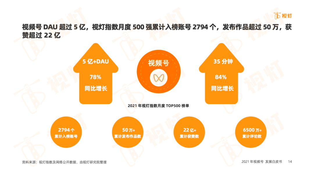在2021年Q4財報的電話會中提到,視頻號在新聞、音樂和知識類內容等目標內容類別上取得了重大突破。超過10萬+個讚的視頻數量強勁增長,用户參與度加深。