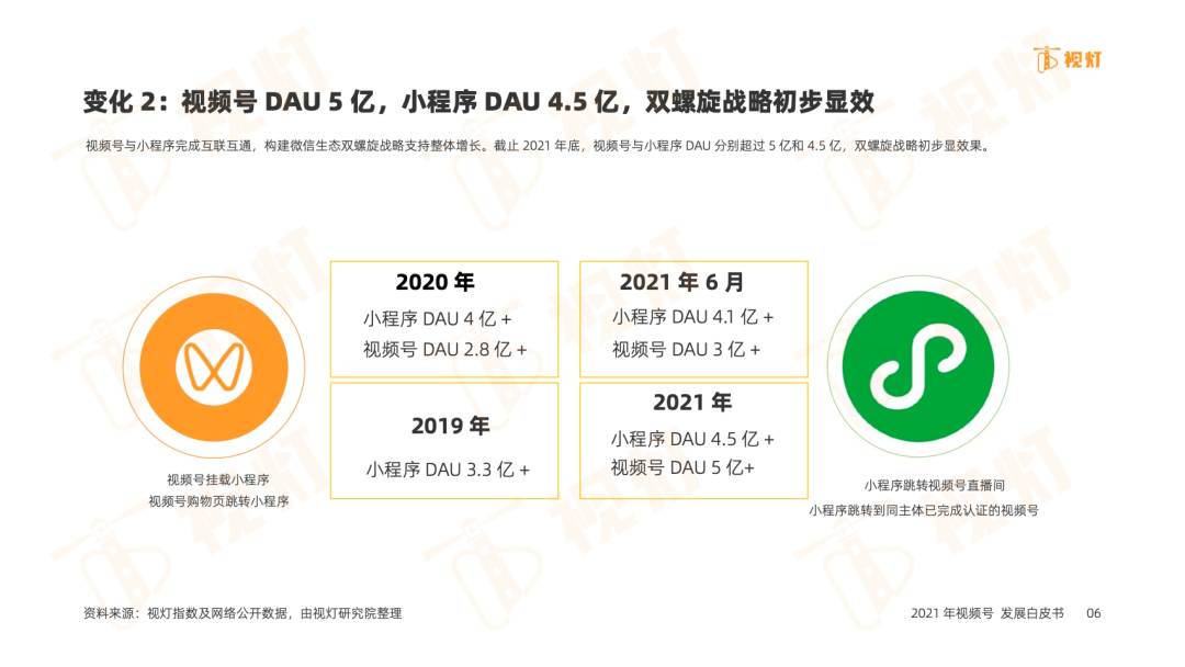 但6億DAU是可信的,作為視頻號的流量池,微信及WeChat合併月活在2021年達到12.68億,這些用户基礎和流量足夠強大,是視頻號得以發展的最大優勢。