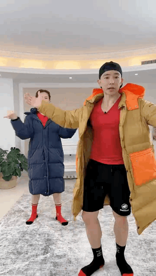 劉畊宏無奈,他拉上妻子索性穿上了長款羽絨服跳操,稱這是最後的倔強。