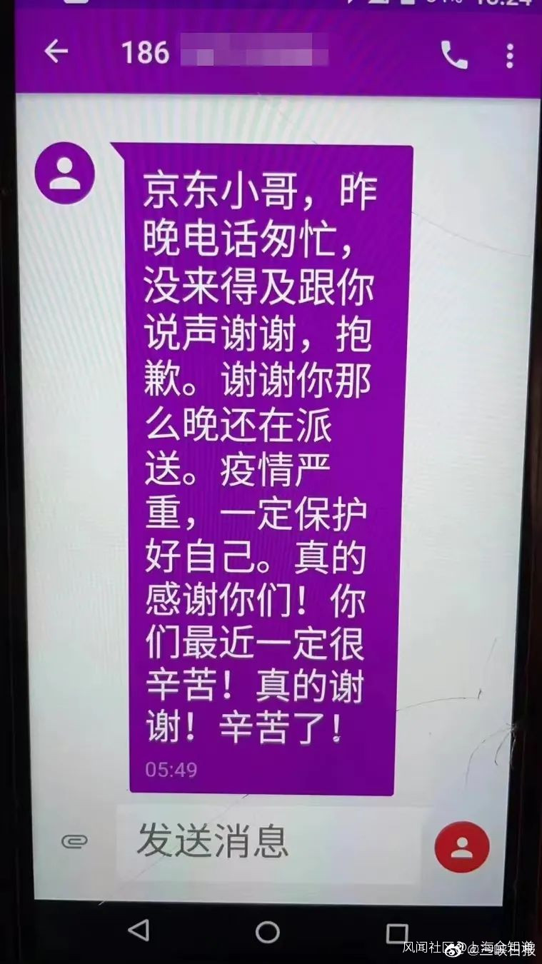快遞小哥還趕緊制止説封控社區不能下樓