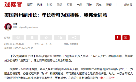 所以按照那位得州副州長的邏輯,這幾十萬老年人豈不全都為國枉死了?