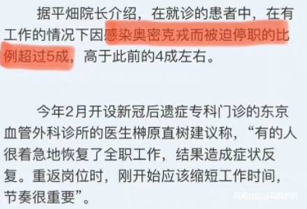 日本國際醫療研究中心調查結果表明,4名新冠感染者中就有1個在半年後仍有新冠後遺症,並且在新冠就診患者中,因感染奧密克戎被迫停職的比例超過5成。