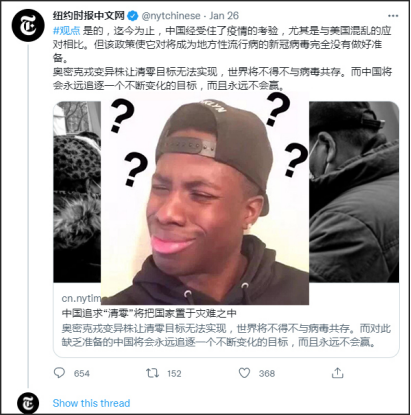 今年1月,為了勸中國躺平,《紐約時報》用一篇觀點(Opinion)文章,把對中國追求零感染的持續抹黑升級到荒唐無稽的新高度。
