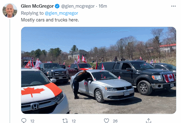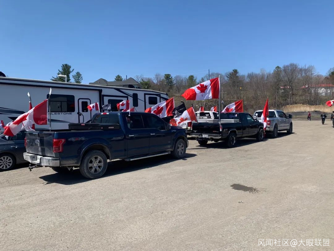 據CTV News報道,今天下午有數十輛汽車停在Kaladar的Highway 7高速公路上準備與市中心的滾雷車隊會和,這些車輛上掛着顯眼的加拿大國旗。