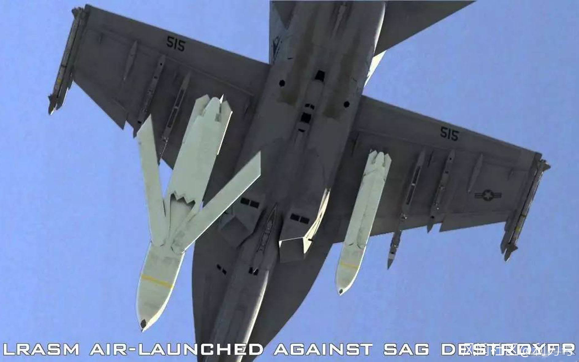 等到了2012年,美國海軍還在持續擺爛中,不過考慮到當年中國海軍初見雛形,幾艘052B和052C都出來了,052D這種玩意也呼之欲出,美國海軍覺得該在反艦導彈的問題上做點啥了,於是用自己的AGM-158通用戰術導彈的平台改了改,改出了一個AGM-158C,也就是被美軍吹得天上有地下無的LRASM。根據美軍的説法,這個LRASM有四大優勢,一是飛得遠,據説能飛600到900千米之遙,小飛機了;二是看不到,LRASM用了隱身設計,當年中俄海軍用的那種老式對海搜索雷達想要發現它難上加難;三是智能化,據説LRASM用了一個高度智能化的導引設備,可以自動分析威脅並進行應對;四是威力強還好攜帶,一架“超級大黃蜂”戰鬥機就能帶4枚,一架B-1B能帶16枚,一枚的殺傷力可以擊毀一艘4000噸的艦艇,看起來性能不錯?