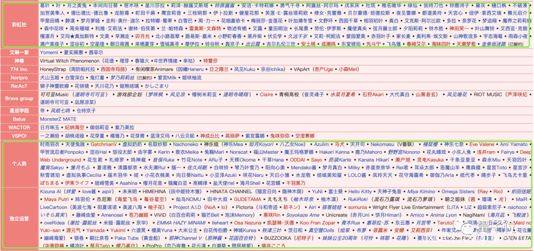 除此之外,個人勢和獨立運營的VTuber也有着龐大的數量,從下面這張出自萌娘百科的統計圖就可見一斑。