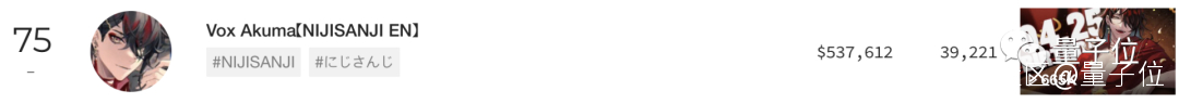 並且根據Playboard的SC(Super Chat)總額排行榜,短短半年內,Vox便已躋身全球前100。目前排名為75名,總收益為53.8萬美元(約合358萬人民幣)。