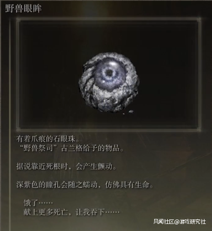 那梅琳娜是宵色眼女王或者她的後裔嗎?我認為不太可能。首先就是梅琳娜與瑪莉卡相似的證據遠多於宵色眼;其次是瑪莉卡成了神,與她同屆,被剝奪力量的神人宵色眼女王也很難有什麼存活的可能。我認為,要解釋梅林娜的宵色眼,就得聯繫這個道具進行解讀。