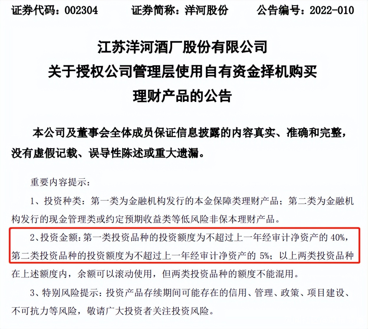 更讓資本不解的是,洋河股份在現金流寬裕的階段沒有進一步擴大規模,而是將其中的一部分用於投資理財。理財有風險,投資需謹慎,這一認知投資者或許遠比洋河股份理解得更透徹。